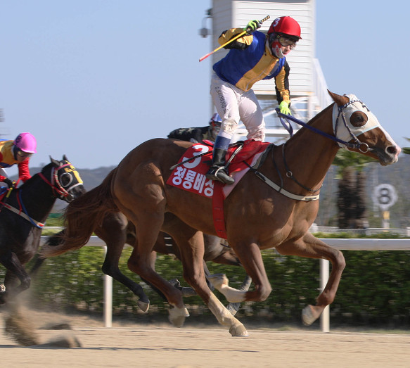 A champion at two and the winner of the first leg of Korea's Triple Crown at three, Doc is all class and he knows it. But don't let his proud carriage intimidate you, he is all business under saddle and there isn't a harder working horse on the ranch. This horse has afterburners and can run down even the fastest cow in the pasture. He is a rush to ride!