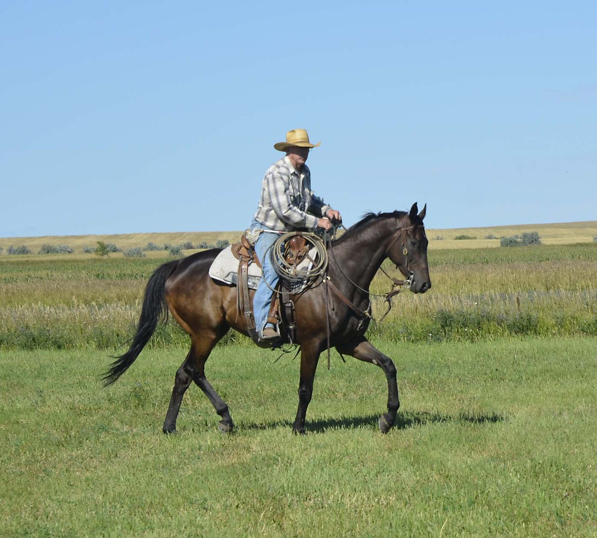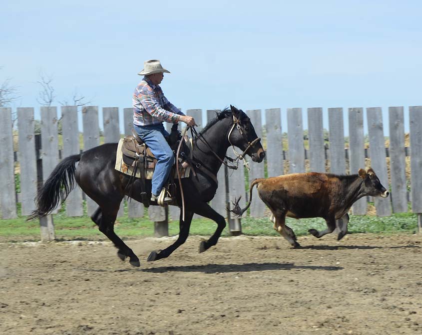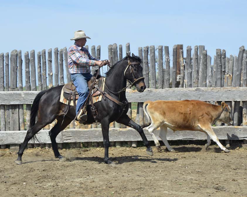 Working cattle in pens, sorting off calves or splitting fighting bulls makes this gelding a reliable mount for ranch tasks, but his talents don't end there. With his big movement, durability and
