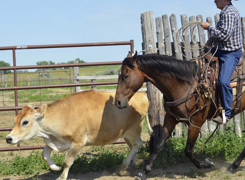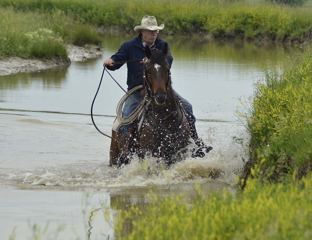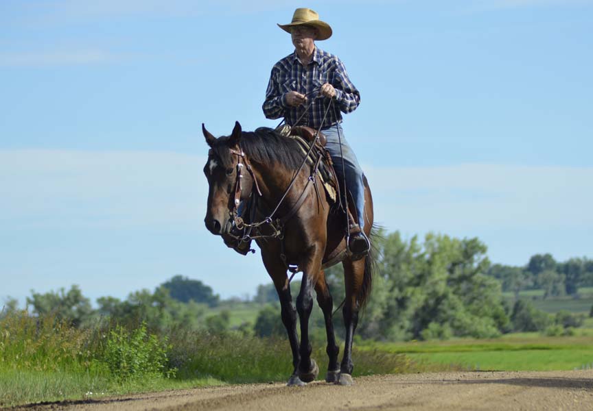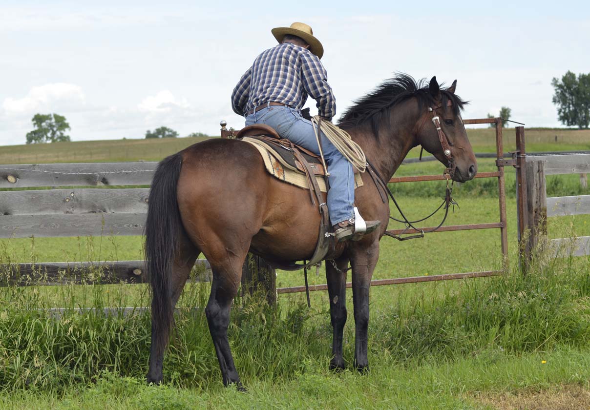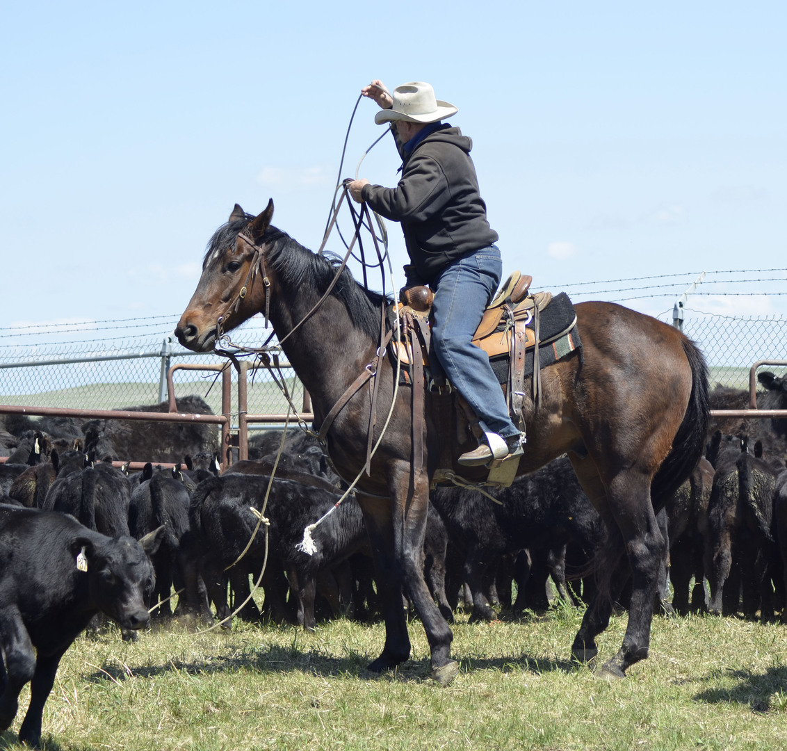 This pretty boy has been used to rope calves at brandings, gather/sort cattle and has seen all kinds of ranch jobs while going to work in some of the biggest pastures in the upper plains. He's willing to try anything asked in various terrain, alone or in company, and will carefully pick his way through rough country. He has a big walk, likes to work and is very kind.