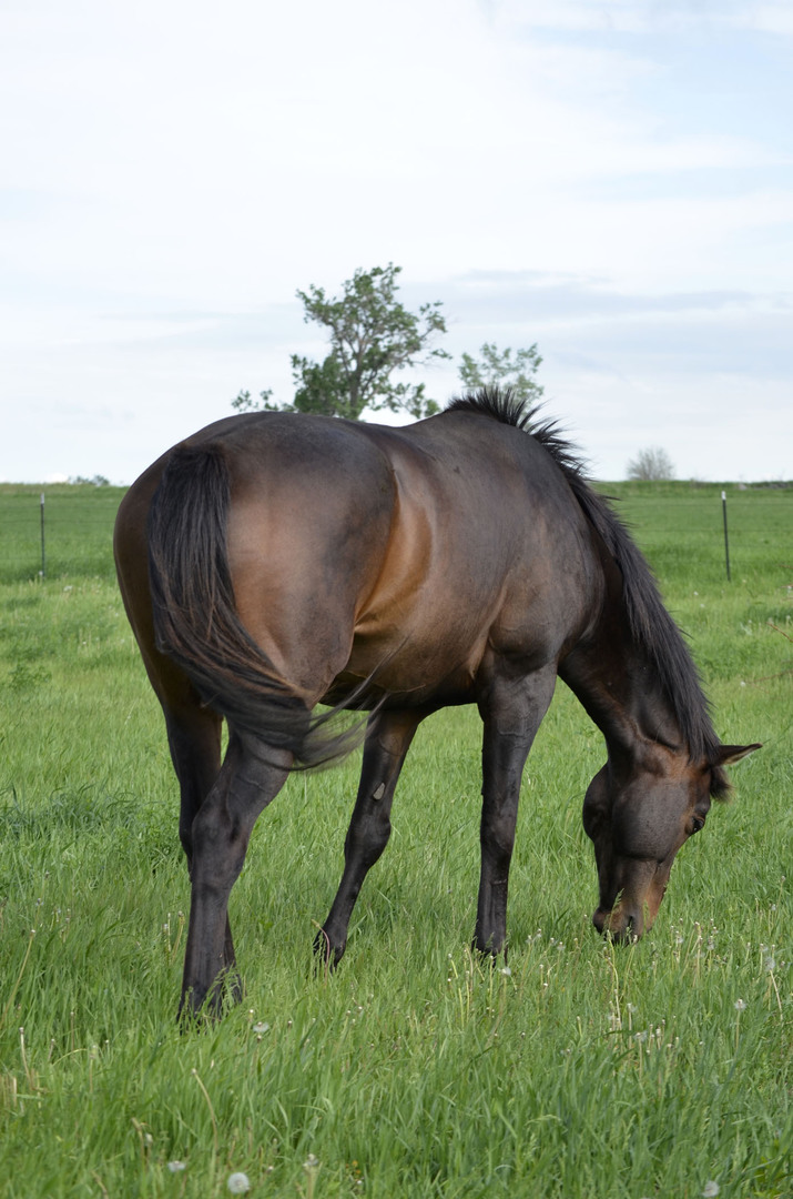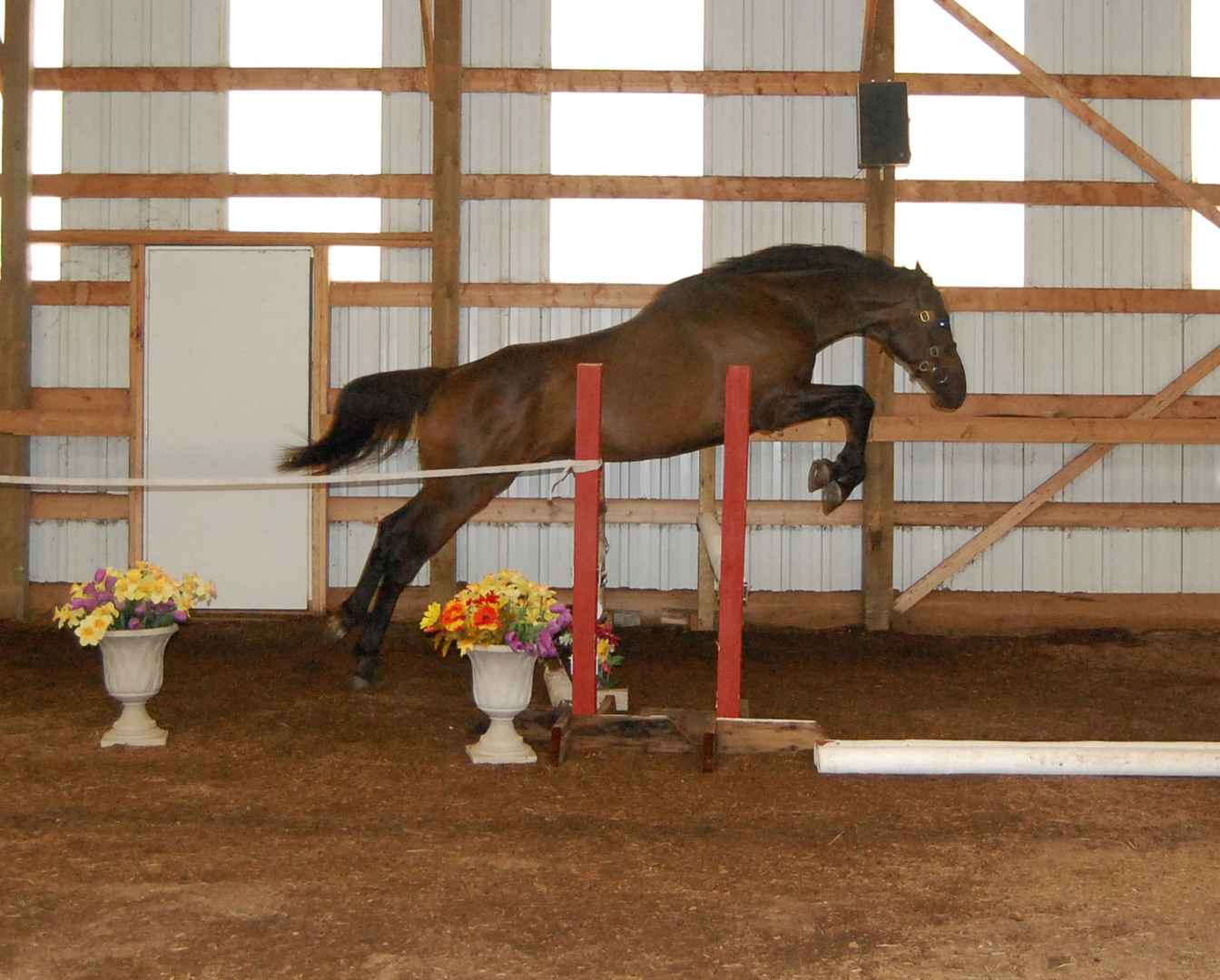 the benefit grain, even through the show season. He keeps out of fences, does not crib and never comes in with scrapes or lost shoes. He hits the ground well on all four and has had no lameness