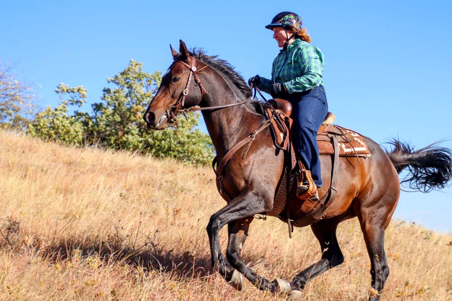 better than a chance to hop a log or lope up a hill. He can cross bridges, work gates, tolerate dogs underfoot, side pass over to a boulder for mounting or dismounting and stands while you take off a
