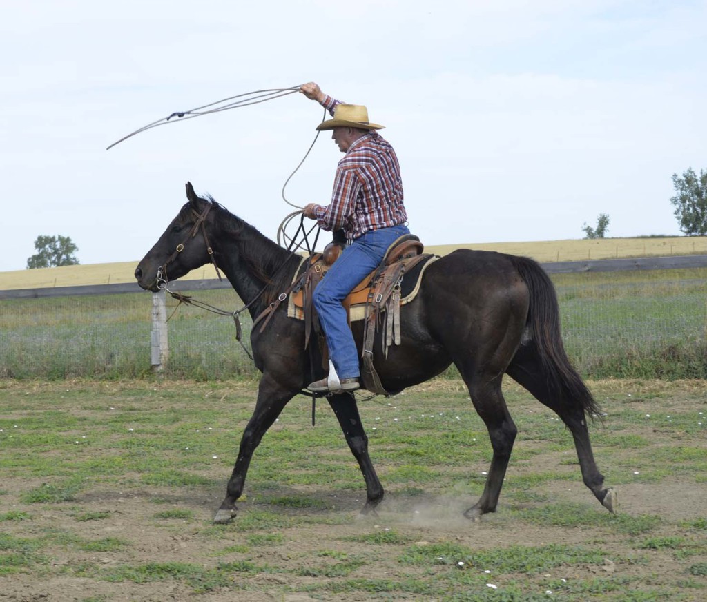 So Dale, trying to show our guests how to "work through an issue", decided he might as well get the rope out and see what happened (something we normally don't do until the 3rd or 4th ride). He swung it, let it slide all over Cactus, then even roped a leg and held it--Cactus stood like a champion.