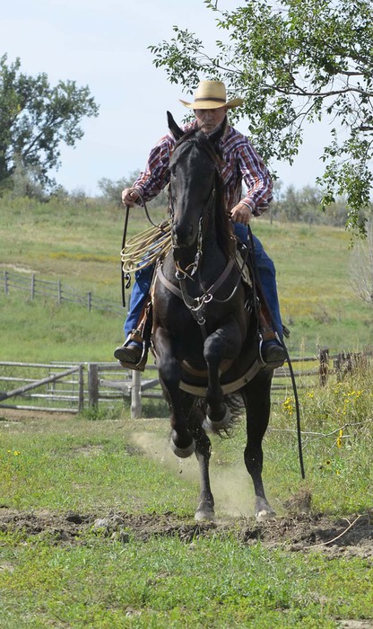 Finally, Dale decided he couldn't ask much more and took Cactus out of the arena. What more he could ask on the first ride? He was foot-perfect in his reining work, worked a cow down the fence like a pro and was willing to rope everything in sight. On the way back from the arena, Dale had Cactus cross a new culvert ditch he is digging and he jumped that like a fancy show hunter.