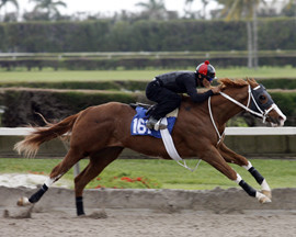 A little reseach showed that he was from a nice family (pedigree) and sold for $155,000 as a yearling and then came back the following spring and was offered at the Fasig-Tipton Two-Year-Old in Training sale. He blazed through his workout and brought a final bid of $145,000, but did not bring his reserve and went home.