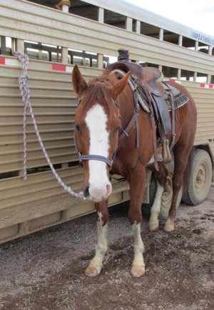 We went to the barn, where he stood quietly while tied as any other saddle horse, without pulling back or wiggling around, while I tossed my stock saddle on him. ( And with 40 plus pounds of gear, I